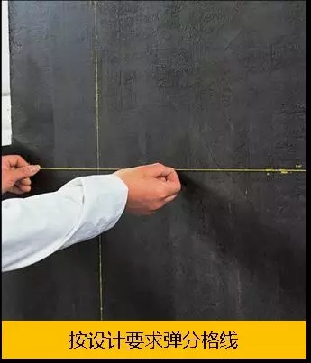 美紋紙粘貼時(shí),與第二次分格縫彈線對(duì)齊即可。