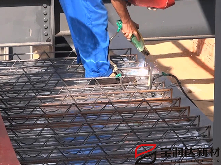 改變壓型鋼板的用途,僅作為樓板施工階段的模板,減少壓型鋼板的用量,降低對(duì)壓型鋼板防腐蝕鍍鋅層的要求;同時(shí),節(jié)省了大量現(xiàn)場(chǎng)鋼筋綁扎量。(普通樓承板需鋼筋12kg左右,鋼筋桁架樓承板需5kg左右)